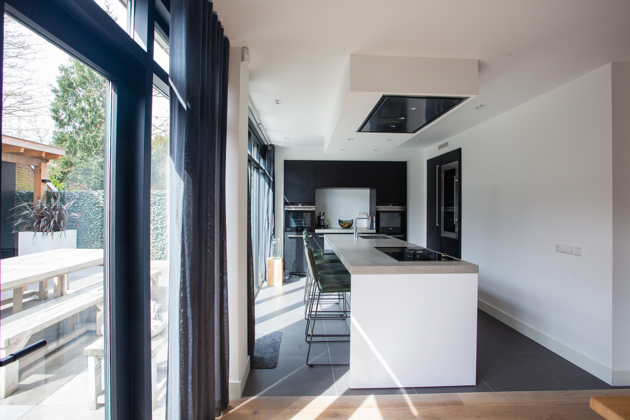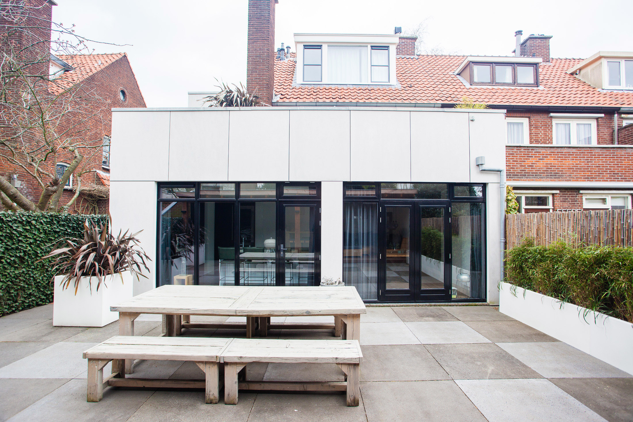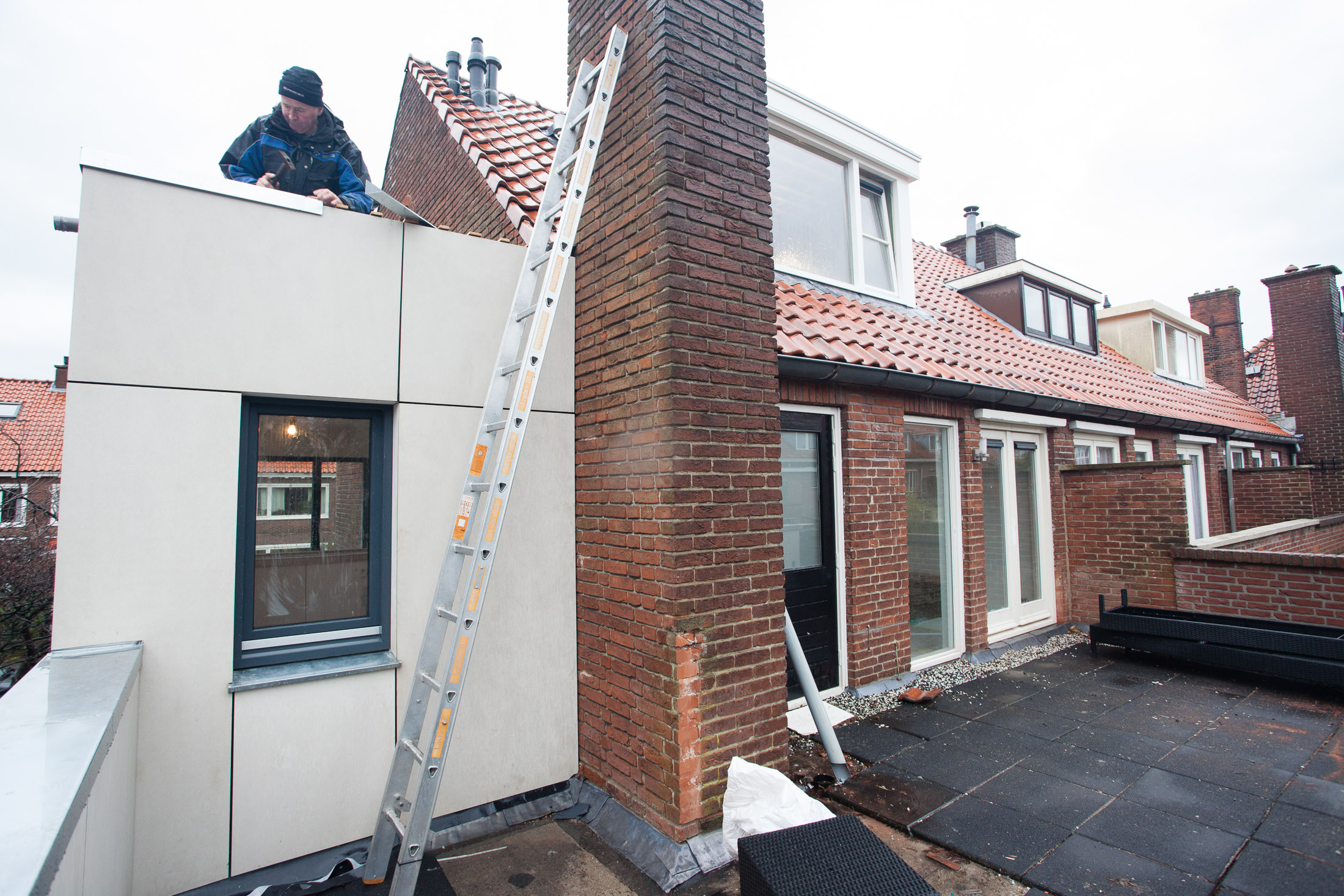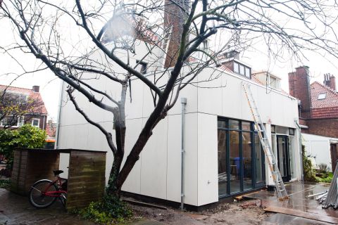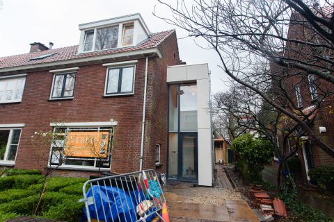 In Delft hebben wij een fraaie jaren '30-woning verbouwd. De architect heeft een strakke, moderne uitbouw ontworpen voor aan de zij- en achtergevel evenals een veranda voor de tuin. De complexiteit bij dit project was dat de zijgevel, waarop een omvangrijke dragende schoorsteen stond, geheel moest worden opengebroken. Ook plaatsten we twee grote dakkapellen en namen we verder de gehele woning onderhanden. Een zeer geslaagde opdracht! De architect van dit project: Minke Oosterlaan.